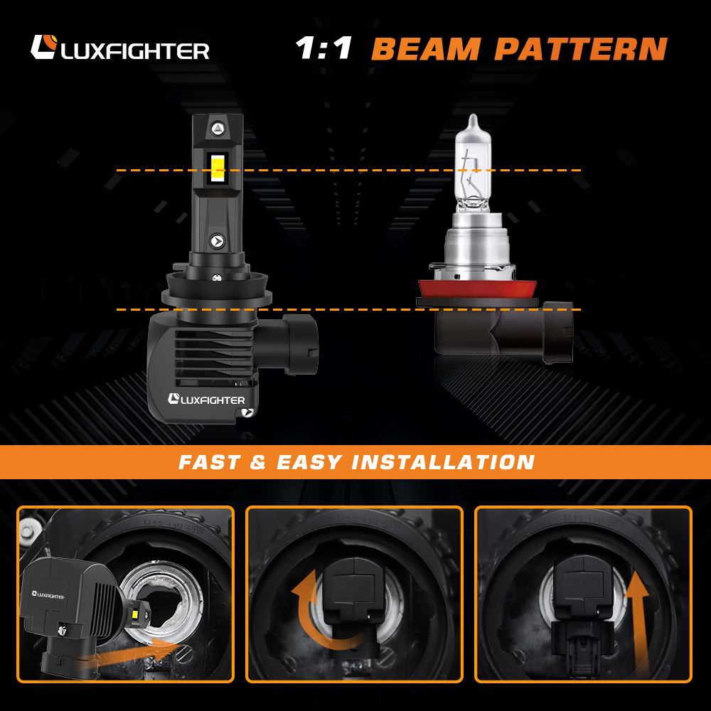Bulbos de faro LED 100W 8000LM El kit de conversión de faros LED súper brillantes es de 1: 1 como bombillas originales que se pueden instalar perfectamente en su automóvil sin necesidad de herramientas y modificaciones en 5 minutos. Después de más de 15 años de experiencia desarrollando y refinando nuestros diseños, sabemos que una bombilla portátil de fácil instalación es la nueva tendencia de los faros LED. Luxfighter proporciona toda la serie de faros LED plug & play para clientes con bombillas que van desde 15 W a 65W.